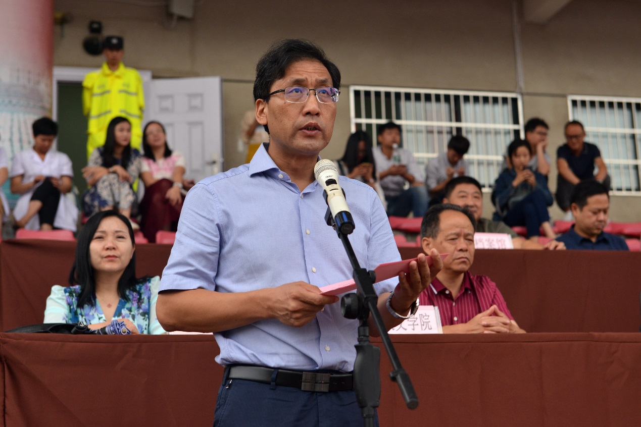 江贤英书记代表学校领导和全体教职工,对同学们的成长和成绩表示祝贺,并向承训教官致以衷心的感谢。他表示,同学们步伐矫健、口号响亮、队列整齐、动作标准,阅兵式上的精彩表演,向全校师生交上了一份亮丽的答卷。江贤英书记希望新同学们胸怀远大理想,珍惜时间,脚踏实地,健全人格,继续保持和发扬在军训中形成的好作风、好习惯,积极践行“厚德、尚能”的校训精神,努力成长为有用之才,在光谷这片学习和创新创业的热土上激扬青春,只争朝夕,创造美好未来。