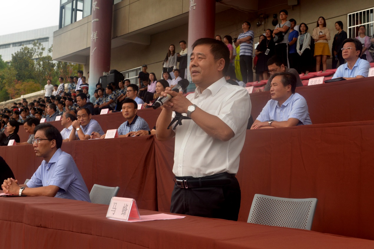 9月25日上午9点, 2018级新生军训结训仪式暨总结表彰大会在田径运动场隆重举行。校党委书记江贤英,校长马蜂,阅兵指挥叶鹤,副校长郑瑛、万国邦、孙美华出席。大会由万国邦副校长主持。江贤英书记期冀新同学们理想远大,珍惜时间,脚踏实地,健全人格,努力成长为有社会责任、有创新精神、有专业技能、有健康身心的应用型高级人才。
