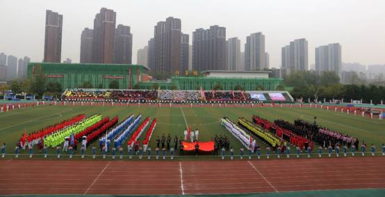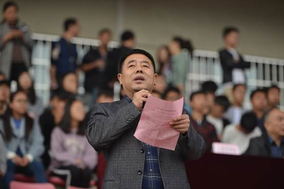 升旗仪式后,马蜂校长致开幕词。他说,运动会的召开正逢第七届世界军运会召开倒计时一周年,是学校的盛事,全体师生员工正逢其时,有幸承担、参与、见证军运赛事,使命重大、荣光无限。他指出,学校高度重视体育运动事业,足球、篮球、排球、羽毛球、毽球、健美操等传统优势项目在各级比赛中均取得优势成绩,体育竞技获奖数在省市同类院校中位居前列。体育运动能强健体魄,健全人格,激发斗志,促进学校各项事业蓬勃发展。马蜂校长热情号召,让我们以迎接第七届世界军运会为契机,用凌云的斗志、团结的力量,诠释奥林匹克精神,展现风采、赛出风格、赛出水平、赛出风貌。