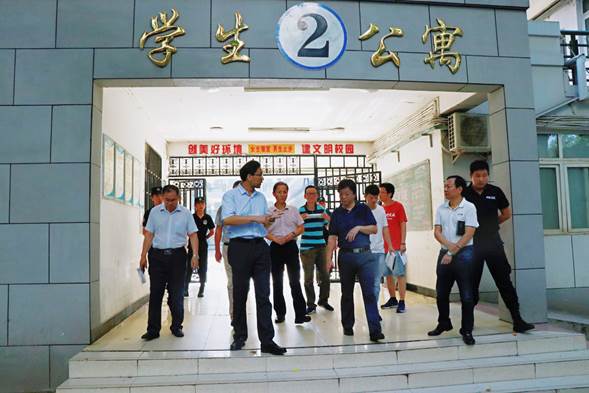 为切实做好暑假前和暑假期间学校的安全稳定工作,消除校园各类安全隐患,杜绝安全事故的发生,确保校园平安和谐。7月10-12日,党委书记江贤英、校长马蜂带领党政办、保卫处、学工处、后勤处等相关职能部门负责人对全校三个校区进行了深入细致的安全检查。