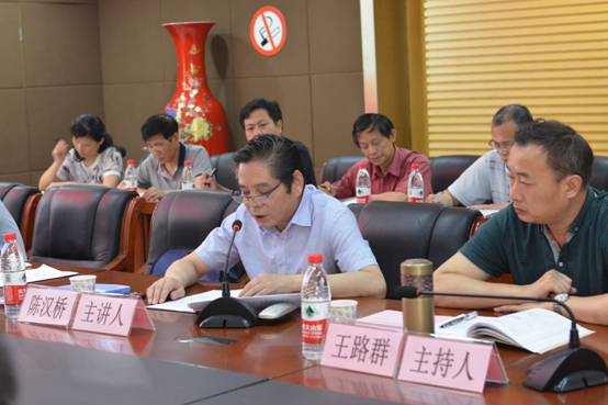 6月14日上午,学术楼二楼会议室,市委宣讲团成员、市委宣传部副部长陈汉桥同志向我校40余名中层干部详细传达习近平总书记视察湖北武汉的重要讲话精神,并解读习近平总书记重要讲话的哲学思想。副校长、宣传部部长王路群主持宣讲会。