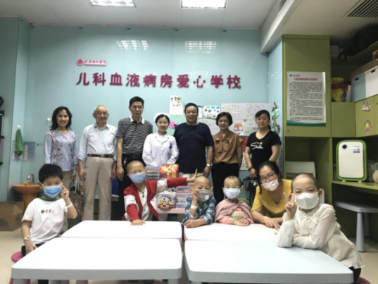5月30日,在“六一”儿童节来临之际,校关工委、老年协会负责人张道掀、杨家慧、刘行渤,离退休工作处张国华、夏利红、刘建华等一行6人走进协和医院儿科血液病房爱心学校,为孩子们送去文化生活用品,祝他们节日快乐,早日康复。