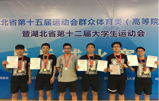 6月3日,湖北省第十五届运动会群众体育类(高等院校)暨湖北省第十二届大学生运动会乒乓球比赛在武汉体院落下帷幕,我校乒乓球队获得丙组男子团体冠军、丙组男子单打亚军、丙组男子单打第六名、女子单打第七名的好成绩。