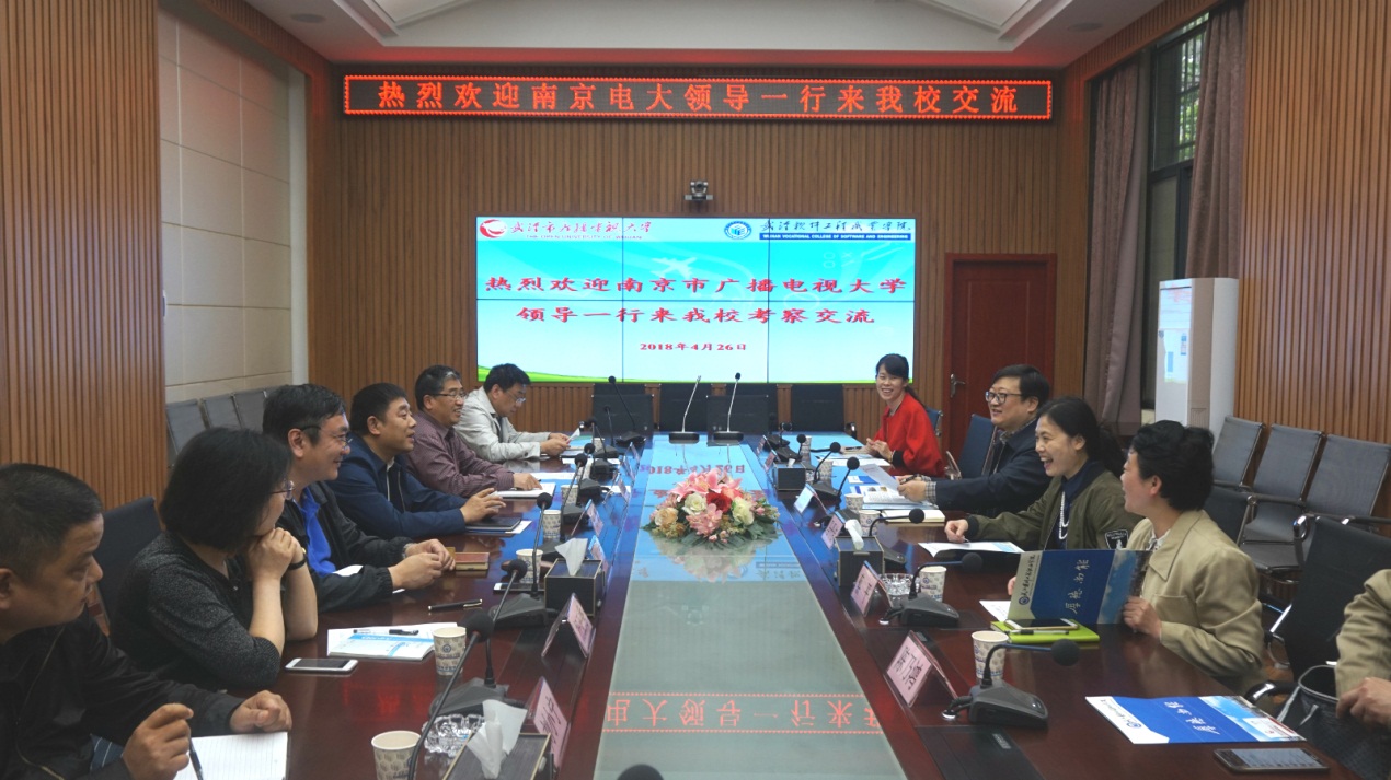 (通讯员 黄倩)盛春的四月,武汉电大迎来尊贵的客人,南京市广播电视大学(南京城市职业学院)陈社育校长一行6人到我校考察交流。校党委书记江贤英、校长马蜂、副校长万国邦接待了客人,相关职能部门负责人参加座谈会。