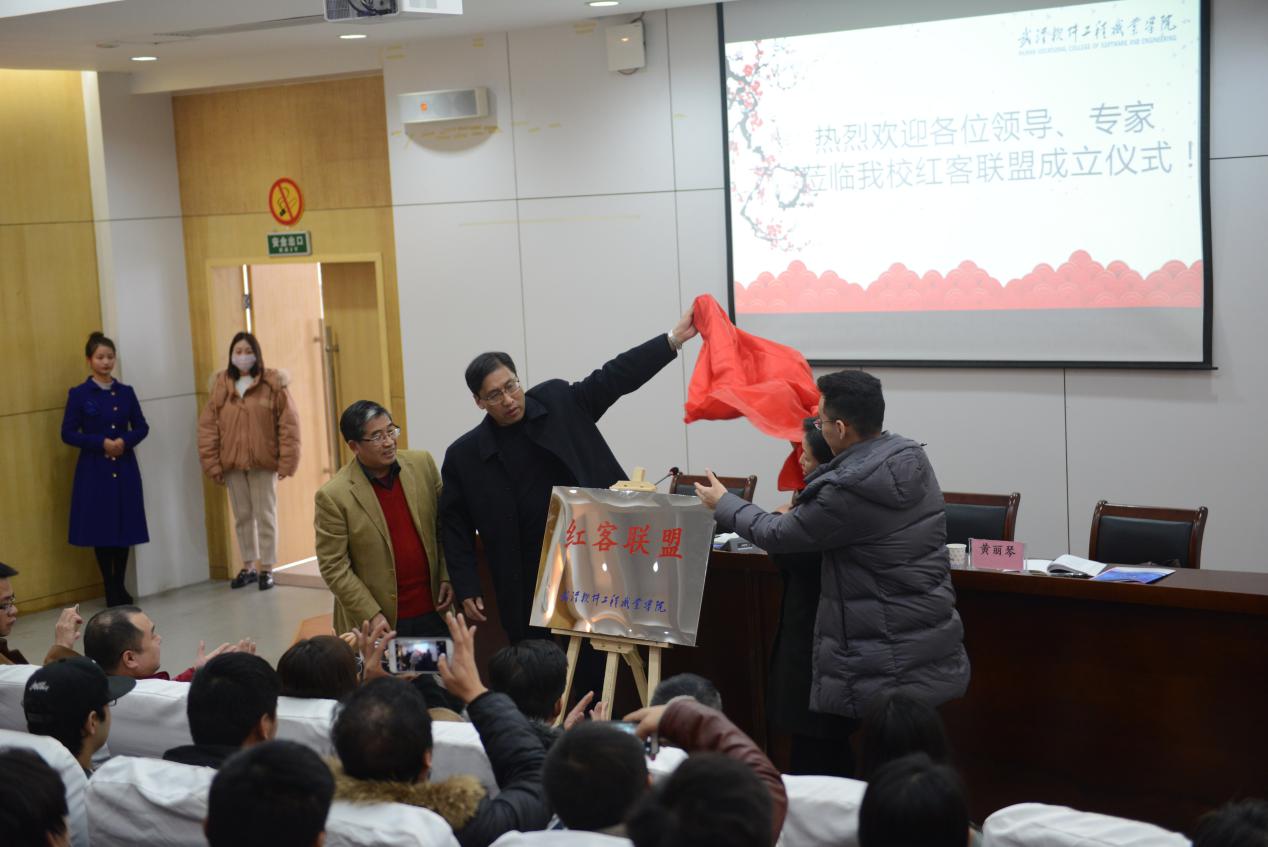 在热烈的掌声中,殷玉梅副书记、江贤英书记、万国邦副校长和胡付博总监一起为“红客联盟”揭牌,武汉软件工程职业学院“红客联盟”正式成立,我校在推进互联网安全建设的道路上迈上新台阶。