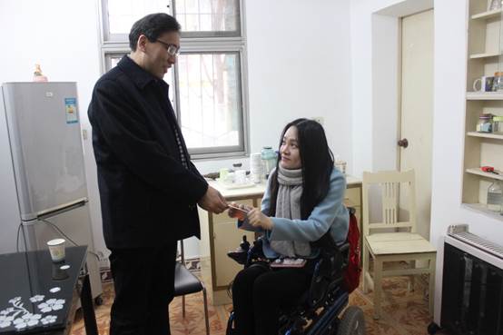 一见到热情微笑的董明,严部长不禁夸赞她精神好、气色好,接着详细询问了她的生活情况,鼓励她要保持乐观向上的生活态度,注意身心健康。严部长对董明助人为乐的精神和在引领社会道德风尚、促进精神文明建设中发挥的模范带头作用表示敬意。他同时指出,道德模范要珍惜荣誉,从力所能及的小事做起,立足学校岗位,培育时代新人,并倡导全社会共同关心、关爱道德模范。董明向严部长汇报了自己成立“‘相信爱’公益服务中心”的一些基本情况,同时对市、区、校各级领导的关心表示感谢。我校党委书记江贤英也代表学校党委送上困难党员补助。