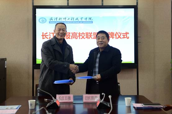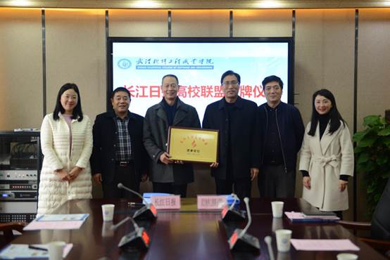 随着林霓涛副总编辑、王欣院长和江贤英书记、马蜂校长共同为“长江日报高校联盟理事单位”牌匾掀起“红盖头”,我校成为长江日报高校联盟第一家授牌单位。