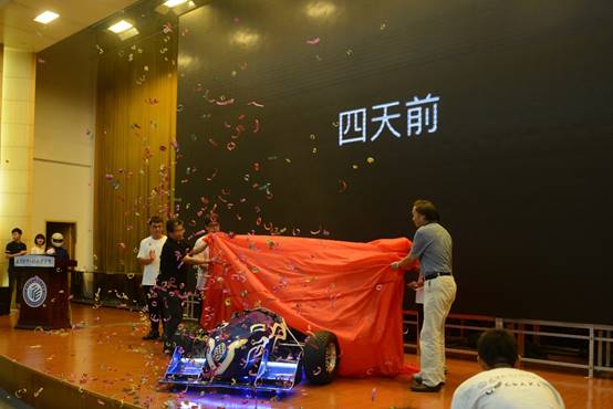 9月26日晚,学术楼1号厅内星辉熠熠,掌声如潮,随着副校长王路群、万国邦将红色面纱揭开,我校学生自主设计制作的第二辆方程式赛车正式亮相。赛车名为 “绝影”,取自曹操的坐骑名。“武软蓝”车身饰以白色火焰纹,外观俊朗,体形流畅,好像一头蓄势待发的骏马。作为武汉市唯一参加中国大学生方程式汽车大赛的高职院校,我校“光谷之翼”车队将驾驶“绝影”在10月上旬出征今年的全国大赛。