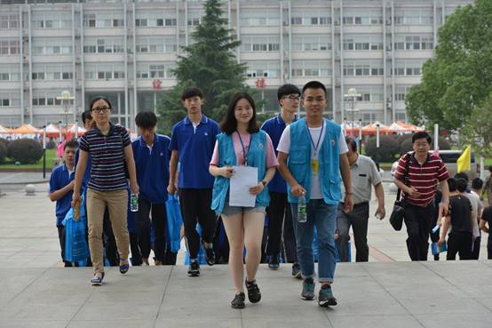 志愿者带领学弟学妹们参观校园
