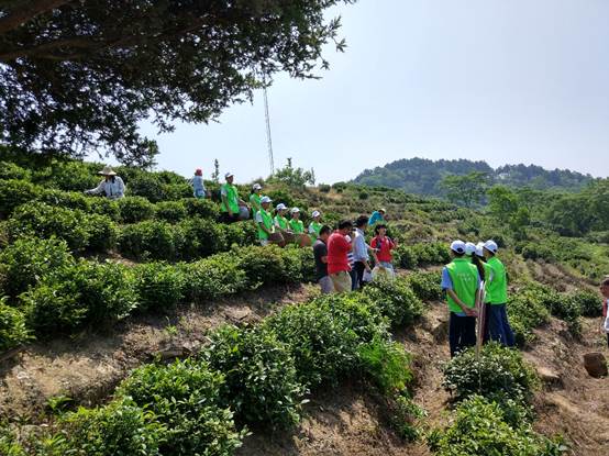 在村里的下乡体验基地茶园,人文学院程炜老师结合村里茶产业的生产和经营情况,向同学们讲解了农村经济发展的现状和制约因素,同学们也纷纷表示要利用所学的旅游产品市场营销的知识帮助茶农们将茶叶卖得更好。