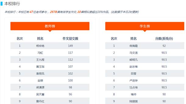 本学期以来,人文学院推进信息化教学改革,在全校所有开设公共英语和专业英语的班级,试用批改网。教师通过手机或PC端下达写作、翻译等任务,学生通过手机完成任务并上交。批改网随即对学生打分、点评、排名,并允许学生在任务截止期前不受限制地多次修改作文。在2017年全校技能节上,人文学院以批改网为平台,推出基于信息化的英语写作大赛。比赛不设考场和考试时间,全校学生通过手机浏览比赛内容,上交作品。全校共有2578学生参赛。目前,得分前100名学生的作文已经从平台导出,进入比赛的第二阶段―人工阅卷。