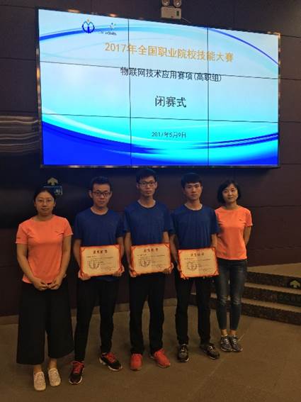 我校物联网应用技术专业自2013年以来四次参加全国职业技能大赛,共获得一等奖一次,二等奖一次,三等奖两次。大赛的成绩是专业建设水平的直接体现,物联网应用技术专业2012年申办成功,现已建设成为湖北省特色专业,武汉市属高校重点实训基地,校级优秀教学团队。自该专业成立以来,始终紧跟当今社会需求,以技能大赛带动专业发展,将课程建设与技能大赛相结合,把大赛内容融入到日常教学,着重培养学生的综合素质,为社会培养了一批又一批的高素质技术技能人才。