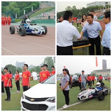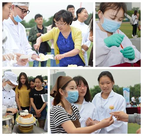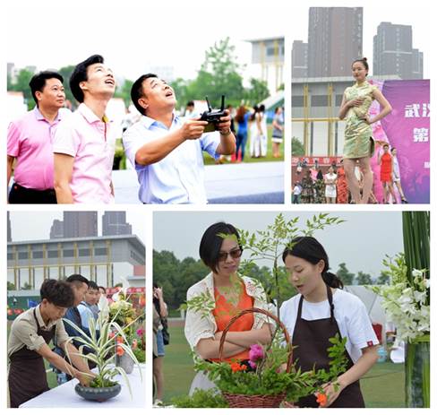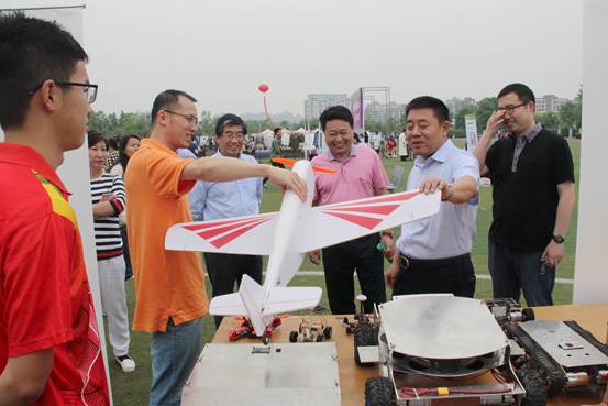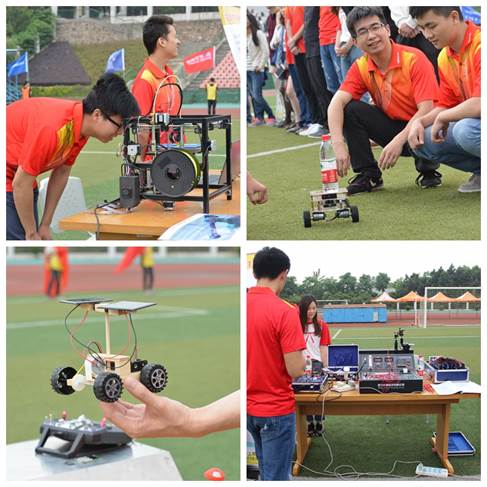 各学院在活动场地进行了方程式赛车、啦啦操表演、无线电创新平台、电子商务综合实训与竞赛系统、智能协作机器人、无人机航拍、食品中有害物质残留量检测、VR应用软件等43个项目展示。雅致的花艺作品引来不少观众驻足,艺术学院园林专业学生叶建国介绍,他的花艺作品“感遇”以芦竹和睡莲为主材,寓意“感谢知遇之恩”。商学院的茶艺展示人气很旺,身着汉服的翩翩君子和如玉美人端坐在茶几旁,轻轻斟茶递给观众品尝,别有一番滋味。机械学院胡成龙院长体验了一把VR教学设备,环化学院叶汉英院长热情地招呼大家品尝现场烘焙的糕点。马蜂校长也来玩起了无人机,把现场欣欣向荣的景象拍下。