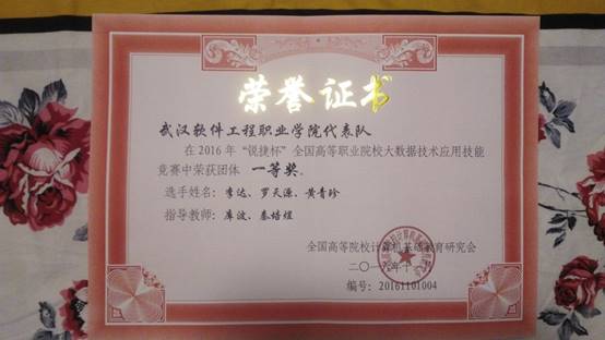 (通讯员 库波)11月26日,由全国高等院校计算机基础教育研究会主办,全国高等院校计算机基础教育研究会高职计算机与电子商务专委会、锐捷网络股份有限公司协办的2016年全国职业院校技能大赛(高职组)“锐捷杯”大数据技术应用赛项在浙江经贸职业技术学院开赛并举行。来自全国21个代表队的63名选手参加了比赛。我校计算机学院计算机信息管理专业学生李达、罗天源、黄青珍组成的代表队,在库波、秦培煜两位老师的指导下,不负众望,经过四个小时紧张激烈的比拼,勇夺一等奖。
