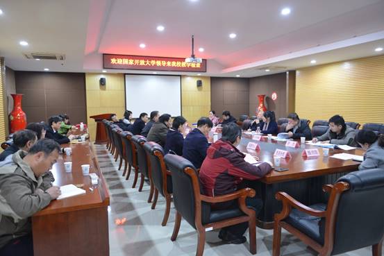 11月29日上午,北京市教委高教处处长刘承邠,国家开放大学质量监控与评价中心主任韩仪等一行六人来校对电大进行教学检查。我校党委书记胡大平、校长马蜂、副校长王路群及相关部门负责人参加教学检查会议。