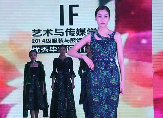 12月1日下午,艺术与传媒学院在学院教学楼成功举办了2014级服装与服饰设计专业优秀毕业设计作品动态展。学校党委书记胡大平、副校长万国邦、教务处长张红卫、以及来自学校职能部门与兄弟院系的领导及教师代表莅临了活动现场,与近300余名学生共赏了本次服装视觉盛宴。