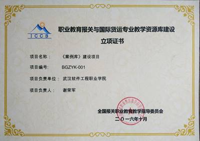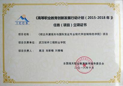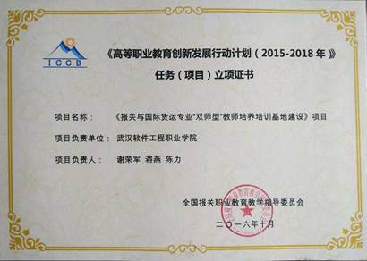 10月21日,全国报关职业教育教学指导委员会正式下发《高等职业教育创新发展行动计划(2015-2018年)》任务(项目)立项证书,我校报关与国际货运专业《校企共建报关与国际货运专业现代学徒制特色学院》和《报关与国际货运专业“双师型”教师培养培训基地建设》两个项目。另外,还获批国家级报关与国际货运专业教学资源库《案例库》项目一个。