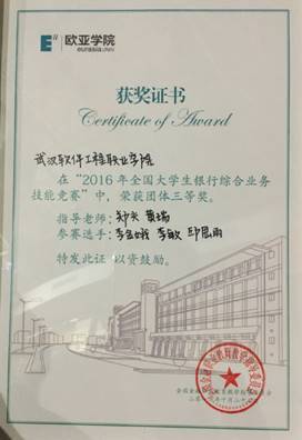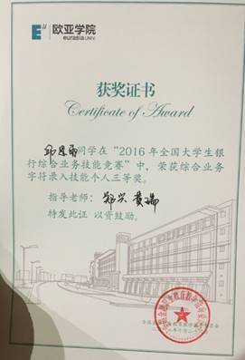 10月22日,商学院学子参加由全国金融职业教育教学指导委员会主办的2016全国大学生银行综合业务技能竞赛,金融管理专业14级学生邱思雨、李金娥、李敏三位同学组成的代表队获得团体三等奖,邱思雨同学荣获个人三等奖。