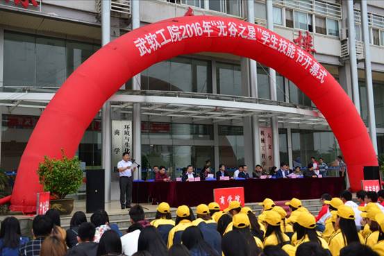 4月22日下午,我校第十届“光谷之星”2016年学生技能节在综合楼门前开幕。开幕式上,马蜂校长殷切期望学子们练好内功,争当技术技能尖兵。