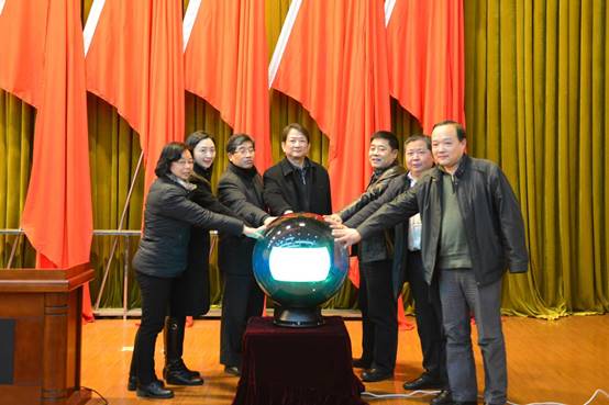 最后,校党委书记胡大平、校长马蜂、副校长万国邦等领导一同启动第七届创业计划大赛水晶球,标志着我校2016年创业工作正式启航。