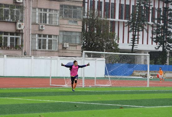 上半场开始第11分钟,我队在对方禁区内做出精妙传切配合,由8号球员余博文攻入一球,形势喜人。接近尾声,对方点球得分追平。下半场,暴雨来袭,场上攻守猛烈,我方门前险象环生,守门员吴思齐严防死守,奋力扑救,破解了对方多次进攻机会。