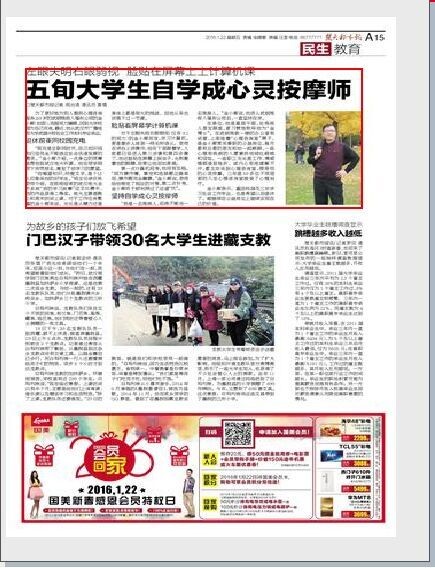 今年1月22日,《楚天都市报》以《五旬大学生自学成心灵按摩师》为题,大篇幅报道了武汉市广播电视大学武昌分校社会工作本科专业金小辉的学习故事。报道讲述了供职于武钢残疾人福利公司的金小辉,年近五旬,克服自身视力重度残疾,重新回到校园刻苦学习,并为其他残疾人朋友提供心理咨询的感人故事。