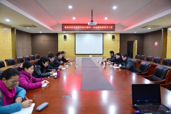 12月17日上午,市档案局局长张明权、业务指导处处长郭加春、业务指导处科长刘腊生一行三人莅临我校档案馆调研、指导档案工作。马蜂校长、郑瑛副校长、董红林馆长及相关同志参加了调研交流与讨论。