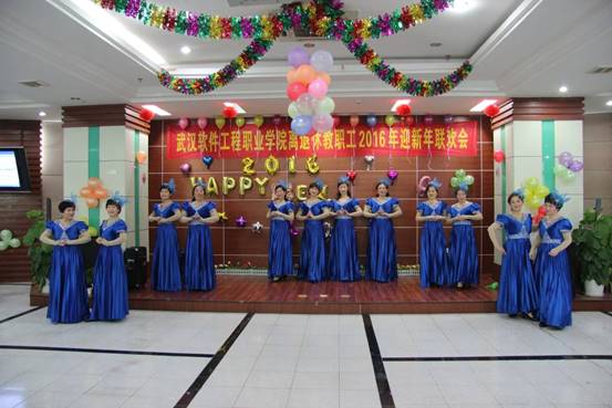 2015年12月29日上午,虽然天气寒冷,但汉口校区2楼多功能厅里却洋溢着欢歌笑语,温暖如春,160余名离退休老同志欢聚一堂,共迎2016新年的到来。学院党委副书记郭友鹏,离退休党总支书记肖华初、老年协会会长张道掀同志参加联欢会,联欢会由校老年艺术团团长杜喜平同志主持。