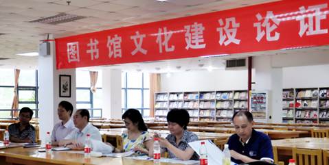 (通讯员李小青 摄影王妍)6月22日上午,图书馆文化建设专家论证会在我校图书馆二楼期刊阅览室召开,会议由郑瑛副校长主持。出席论证会的专家有武汉职业技术学院图书馆柳金发馆长、武汉交通职业学院图书馆原馆长叶俊、铁道职业技术学院图书馆邱惠芳馆长、武汉电力职业学院图书馆原馆长谭雪梅、武汉船舶职业技术学院图书馆尹志清馆长、长江职业学院图书馆戴斌主任。我校党政办、工会、财务处、后勤处、图书馆的领导及部分图书馆馆员参加了此次论证会。