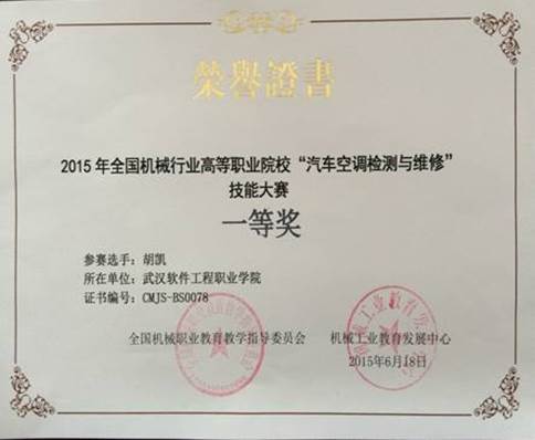 在刚刚结束的收获2015年全国职业院校技能大赛中,我校代表队代表湖北省出征参赛,勇夺化工生产技术技能大赛团体奖,曾汪武同学荣获农产品质量安全监测竞赛个人三等奖。
