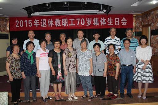 6月12日上午,离退休工作处在汉口校区15楼会议室为今年70岁的退休教职工集体过生日,有15位退休老同志参加了今天的集体祝寿活动,生日会由离退休工作处王学东副处长主持。