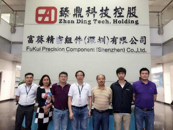 (通讯员 尹慧玲)为深入加强校企合作力度,进一步巩固和拓宽毕业生就业渠道,应富葵精密组件(深圳)有限公司之邀,5月6日至7日,校企合作处副处长王麟、环化学院副院长金学平、电子学院副院长王中林、机械学院学生科科长尹慧玲一行4人,赴富葵精密组件(深圳)有限公司洽谈校企合作事宜并看望我校在该公司和鸿准精密模具(深圳)有限公司的顶岗实习学生。