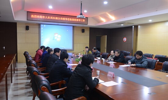 (文/杨玲、图/吴定海)1月14日,市人社局东湖分局局长吴卫东、副书记杨延飞一行莅临我校,调研大学生创业培训工作。我校副校长郑瑛、继教学院院长夏毅、校团委书记黄俊亮等接待了来宾。调研会议由夏毅主持。会议过程中,气氛融洽热烈,双方就开展好大学生创业培训,携手扶持大学生创业,开展了互动交流,达成新的共识。