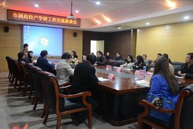 (通讯员:王燕 / 摄影:周娅)为加强校际交流,推动市属高校产学研协同创新合作,2014年11月28日上午,市属高校产学研工作交流座谈会在我校学术交流中心召开。市教育局副局长田文江、高教处处长董亦频、科长何薇,江汉大学、武汉商学院、武汉城市职业学院、武汉生物工程学院、江汉大学文理学院等5所院校的科研负责人及项目管理人员,我校党委书记胡大平、校长马蜂、副校长郑瑛、科研处全体人员等20多人参加了会议。会议由董亦频处长主持。