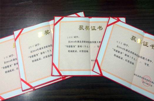 本次大赛由湖北省教育厅主办,汇集了全省各职业院校,共有130多名学生参加导游服务赛项,分两天进行。竞赛分普通话导游服务组和英语导游服务组,内容包括形象风采、导游讲解、现场知识问答、情景再现和才艺展示五部分。虽然强手如云,但我校四名参赛选手顶住压力,克服时间紧、任务重、竞争强等困难,发挥出较好的水平,最终,吕倩倩、张莹莹同学分别获得普通话导游服务组二等奖、三等奖,余颖、李梦玲同学分别获得英语导游组三等奖。