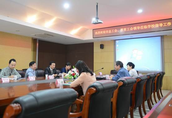 近日,武汉市总工会副主席李兵、技协办主任曹惠明、副主任许静红、市教育工会主席许芬一行四人,就我校的劳模创新工作室创建工作进行了检查。马蜂校长、郭友鹏副书记、王路群副校长等热情接待了领导一行。