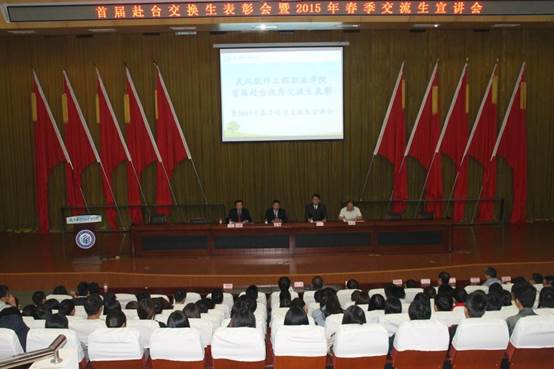 (通讯员 刘兆青)10月16日14:30,我校首届赴台优秀交换生表彰暨2015年春季赴台交换生宣讲会在学术交流中心1号报告厅召开,来自全校七个学院的近400名学生代表、我校首批赴台交换生、马蜂校长、郑瑛副校长、王路群副校长、台湾东南科技大学董益吾副校长、各学院及职能部门领导,共同分享了我校赴台交换生在台湾东南科技大学的学习经历和生活感悟。副校长王路群主持了这次会议。