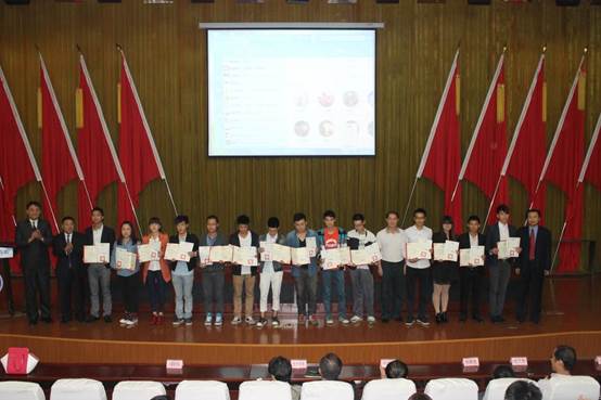 郑瑛副校长宣读了首届赴台交换生获奖名单以及台湾东南科技大学的学业成绩奖名单。马蜂校长、郑瑛副校长、王路群副校长、台湾东南科技大学董益吾副校长为获奖同学颁发了获奖证书。