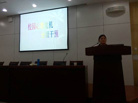 随后学工处副处长张汉芳对大家进行了心理健康教育培训,具体讲授了危机干预的流程和方法。她认为作为合格的辅导员,需掌握一些精神疾病的具体症状,比如抑郁症、精神分裂症,如此才能及时辨别、及早发现那些出现心理疾病的学生,才能及早做出相应的措施,让学生根据严重程度,接受心理疏导或专业治序,避免有不可挽回的遗憾发生。此外,辅导员还要帮助这些学生办理住院、休学、退学等相关手续,并在学生重新返校后及时关注他们,对他们进行长期的关爱和心理辅导。