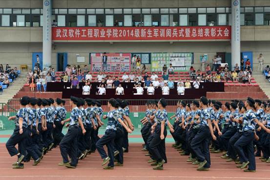 接下来的分列式表演中,三十六个方队,迈着矫健的步伐,喊着嘹亮的口号,先后通过主席台,接受部队首长和学校领导的检阅,他们以饱满的精神、飒爽的英姿、整齐的队列充分展示了两周的军训成果和武软学子的蓬勃朝气,喊出了武软学子的精气神,踢出了热血儿女的拼闯劲。