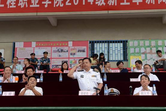 最后,校党委书记胡大平讲话。他代表校党委和全体教职工向圆满完成军训任务的2014级新同学表示热烈祝贺,向为军训工作付出辛勤劳动和汗水的海军工程大学的首长和教官们表达了诚挚的问候和感谢。他充分肯定了2014级新生在军训中不畏艰苦,风雨无阻,刻苦操练的精神,勇于吃苦、敢于吃苦的毅力,看到了他们接受军训洗礼与磨砺后的成熟与成长。他希望同学们规划好大学生活,规划好未来的职业生涯并付诸行动,“把智慧运用到学习上,把汗水挥洒在劳动中,把热情燃烧在活动里,把爱心奉献给社会,把自信根植在内心。”