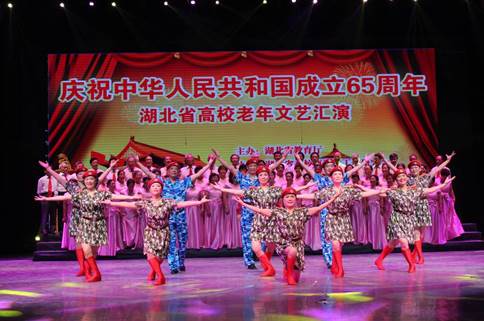 9月27日上午,由湖北省教育厅主办,省高校离退休工作研究会和省高校老年协会承办的“庆祝中华人民共和国成立65周年暨省高校老年文艺汇演”在中南民族大学礼堂隆重举行,全省20余个高校离退休老年文艺团体参加了这次演出,老同志们用优美的歌声和舞蹈向祖国致以生日的祝福。