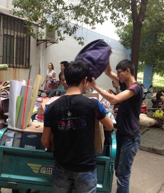 面对细致周到的服务,大三的学生也大呼感动,“特别是后勤集团的一位伯伯,骑着自己的三轮车义务帮我们搬运行李,我们很庆幸能遇到这样一位免费并且热情帮助我们还不肯留下自己姓名的伯伯,谢谢您!”来自艺术学院2栋宿舍的同学们为自己接受到这样贴心和周到的帮助而感动不已。在我们心中,“您不仅是一位称职的好师傅,更像是一位慈祥的父亲,在我们最需要帮助的时候在我们的身边!”