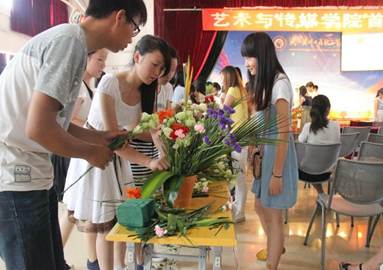 (通讯员:陈菡)杨柳萦桥绿,玫瑰拂地红。2014年5月27日中午,艺术与传媒学院团总支学生分会主办的2014年首届大学生插花比赛在综合楼多功能厅顺利举行。学院党总支王鹰书记、辅导员老师以及两百多名学子参加了本次活动。本次活动的评委由动画教研室主任周宇老师、园林工程技术专业教研室主任侯永胜老师以及机械学院教务科叶志娟老师三名老师担任。