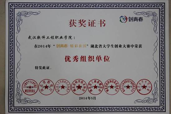 2014年“创青春·精彩在沃”湖北省大学生创业大赛以“中国梦 创业梦 我的梦”为主题,将大学生的创业梦与中国梦有机结合,打造深入持久开展“我的中国梦”主题教育实践活动的有效载体,全省共80余所高校参赛。本次活动得到了校领导的高度重视和师生门的热切关注。经校内评审,校团委报送8个作品参赛。在申报书撰写、团队答辩、成果展示的宣传讲解等环节,指导教师和同学们都认真准备,积极投入,充分展现了我校学子创新、创意、创造、创业的意识和能力。希望在以后的比赛中,同学们再接再厉,再创佳绩,教职工们积极参与指导,为我校培养出更多高素质技能型人才。