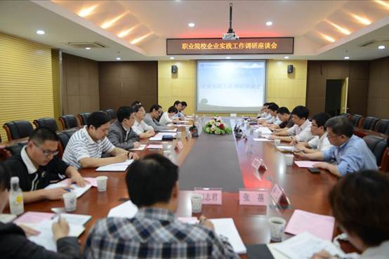 (通讯员 毛述劼)5月14日下午,教育部教师工作司教师培训处陈武处长、国资委群众工作局综合处毛溪泉处长等一行八人来我校进行职业院校教师企业实践工作调研。校党委副书记戴向军、相关职能部门负责人和各学院教师代表参加了座谈会。会议由校企合作龚平处长主持。