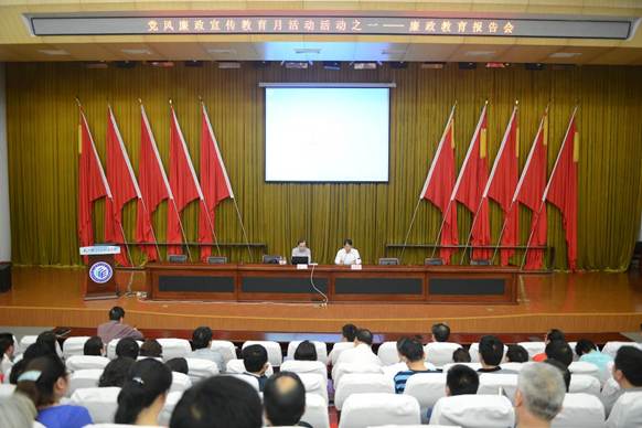 为深入学习贯彻中纪委十八届三次全会精神,加强党员干部廉洁自律意识,筑牢领导干部拒腐防变的思想防线,结合党风廉政宣传月活动安排,5月21日下午,学校特邀请武汉市人民检察院职务犯罪预防处处长陈正军以“贪官启示录”为主题作了廉政教育专题报告。学校党委班子成员,科级以上干部,党风行风监督员共140多人参加了报告会。会议由校党委书记胡大平主持。