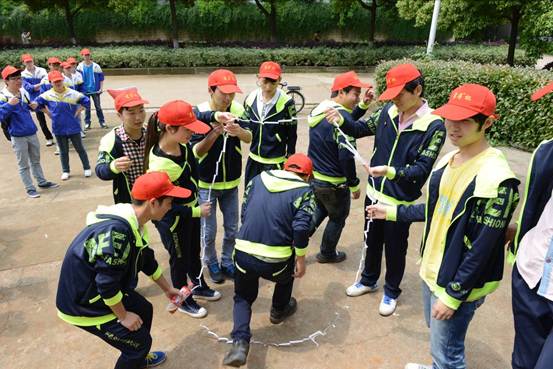 计算机学院国家级素质拓展培训师郑瑞丰老师说,击鼓颠球、中流砥柱、有轨电车使团队懂得了同时协调好速度、力度、稳定度,才能顺利完成任务,就如同在班级这个团队中的角色,我们只有充分发挥自己的性格、能力、特长,才能让班级的小宇宙爆发。不倒森林、驿站传书、盲人沼泽、穿越A4,多米诺骨牌使我们懂得团队协作需要耐心与细心,沟通与协调,在事情看似简单却操作复杂时,找准解决问题的关键点。他鼓励同学们把此次素质拓展的精神发挥到日常生活中,做处处留心、常常关心、事事开心的追梦人。
