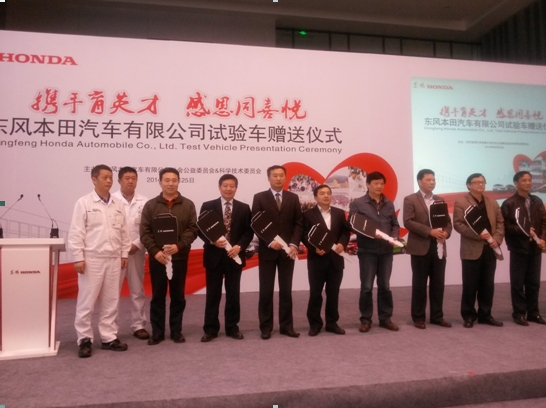 4月25日上午,校领导王路群副校长,汽车工程学院曾鑫副院长以及招毕办赵丹代表我校参加了在沌口举行的东风本田汽车有限公司试验车赠送仪式。