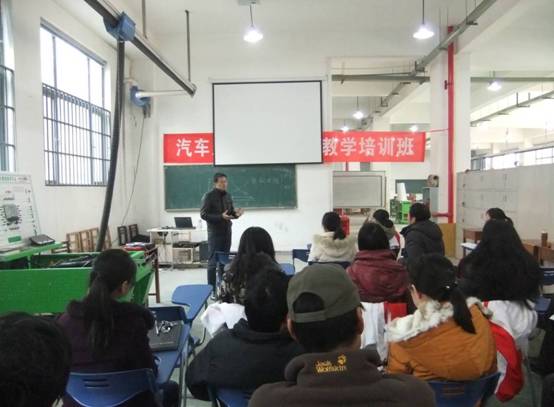 本次汽车发动机一体化教学培训班旨在提升教育教学质量,进一步推进教育教学改革,深化骨干校建设,培训班培训时间从1月7日到1月8日,邀请了国内相关领域专家前来授课,包括:《事故车查勘与定损》国家精品资源共享课程负责人、全国职业院校技能大赛裁判、湖北省优秀教学团队负责人、黄冈职业技术学院交通学院院长张红英教授;邢台职业技术学院汽车工程系一体化项目教师陶炳全;广州亚普机电设备科技有限公司汽车技术总工黄景文;黄冈职业技术学院汽车实训中心主任何琨和汽车一体化教学教师武永勤等专家。培训中安排了张红英教授的《精品资源共享课程建设剖析》讲座;陶炳全老师的《发动机温度传感器的检修课程设计和实施》讲座;何琨老师的《发动机怠速不良故障检修》一体化教学示范课;黄景文总工和武永勤老师的发动机一体化培训及考核课等。参加培训的汽车专业教师按4人一组分为7组,在6天的时间里将完成发动机拆装、检测、调整的一体化课程学习。培训完成后,培训项目组将对他们进行考核和评价,每名教师要提交学习总结,每个小组要提交教学改革论文。